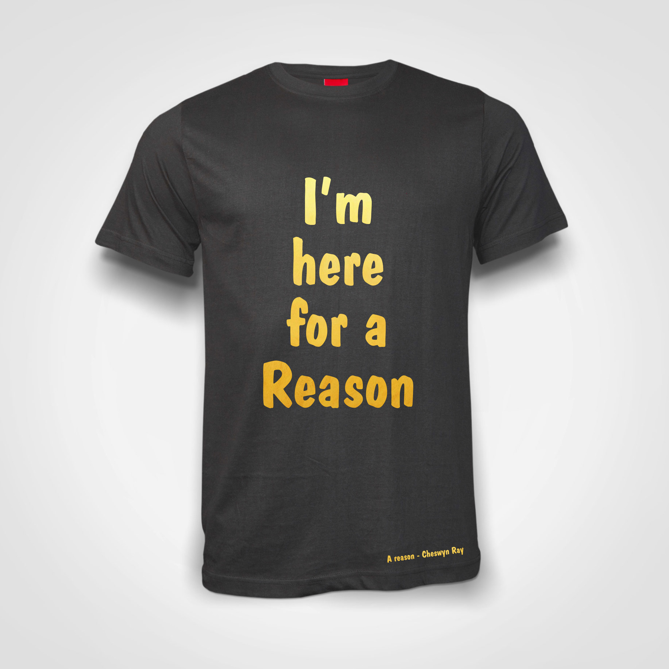 Elegant black-only T-Shirt and available in all sizes. A Reason, by Cheswyn Ray, is for the passionate go-getter who knows what they want! Designed and printed by AC Clothing.